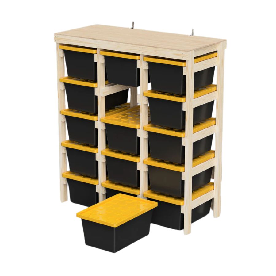 - Easy Access: Totes sit flush within the rack, ensuring convenient access and keeping them elevated to protect them from moisture and dirt.